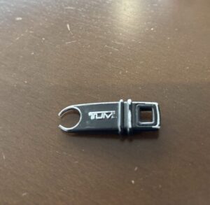 今回の出張中にバッグのファスナーの引手が壊れてしまいました。金属の丈夫な引手ですが、長年の使用による金属疲労のようです。まだまだ現役で頑張ってもらいたいバッグですので引手のみ交換して使います。